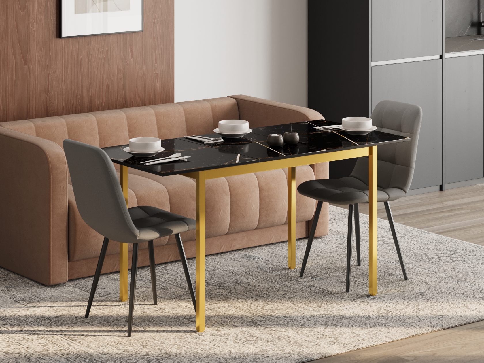 Декор под мрамор придает модели элегантный вид. Стол компактен в сложенном виде, при этом легко раскладывается, если нужно разместить гостей.