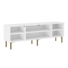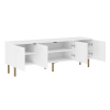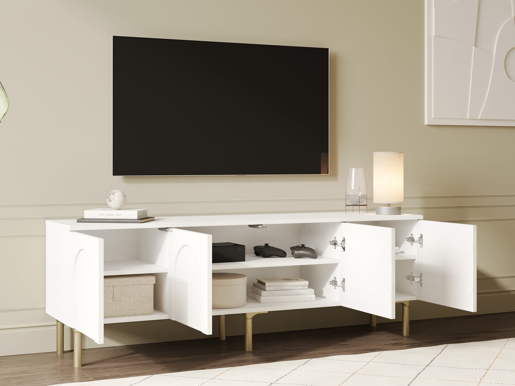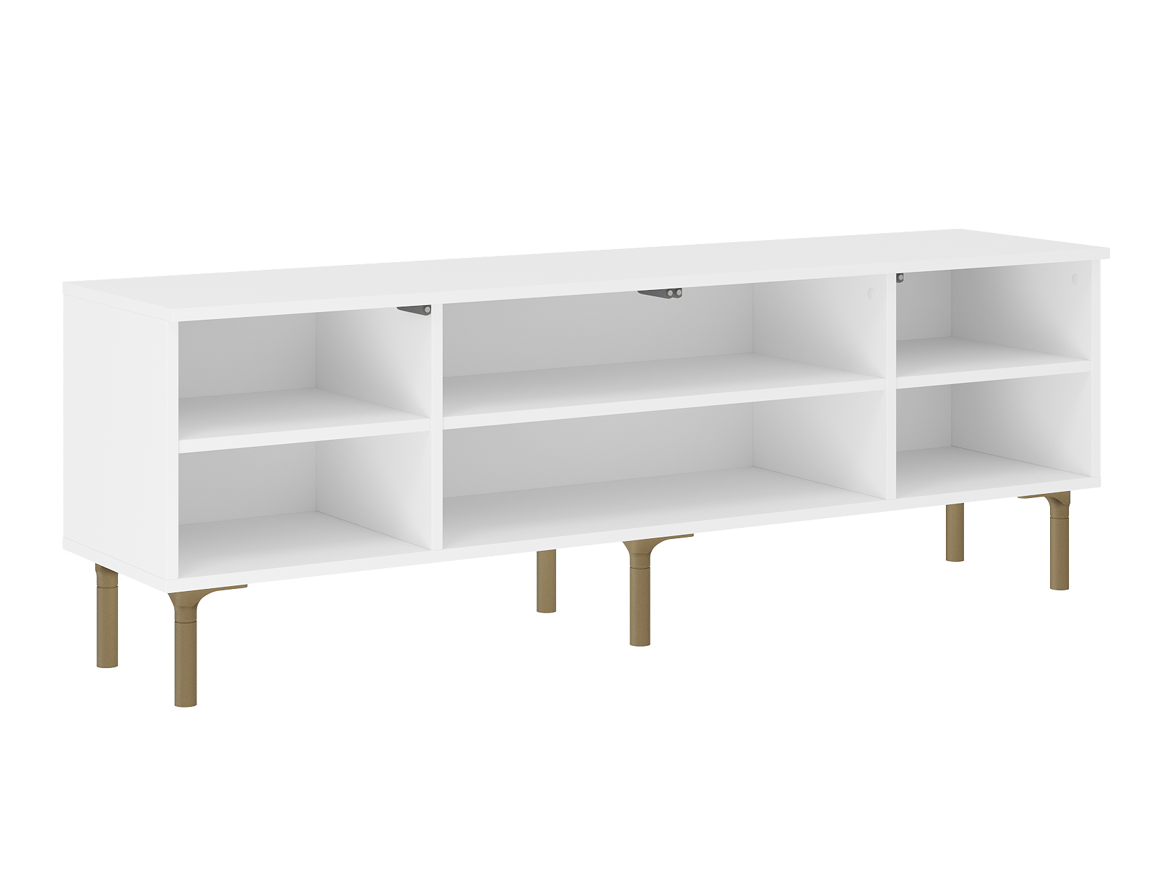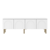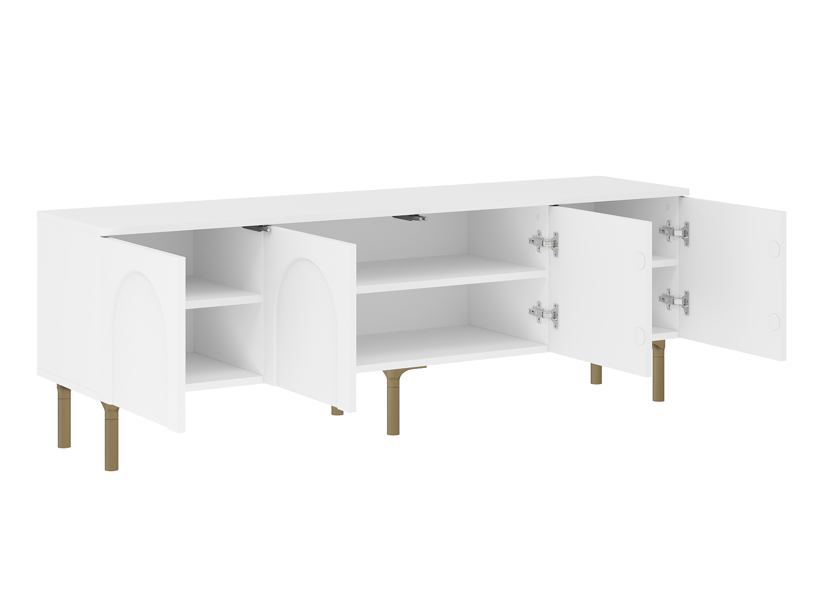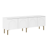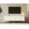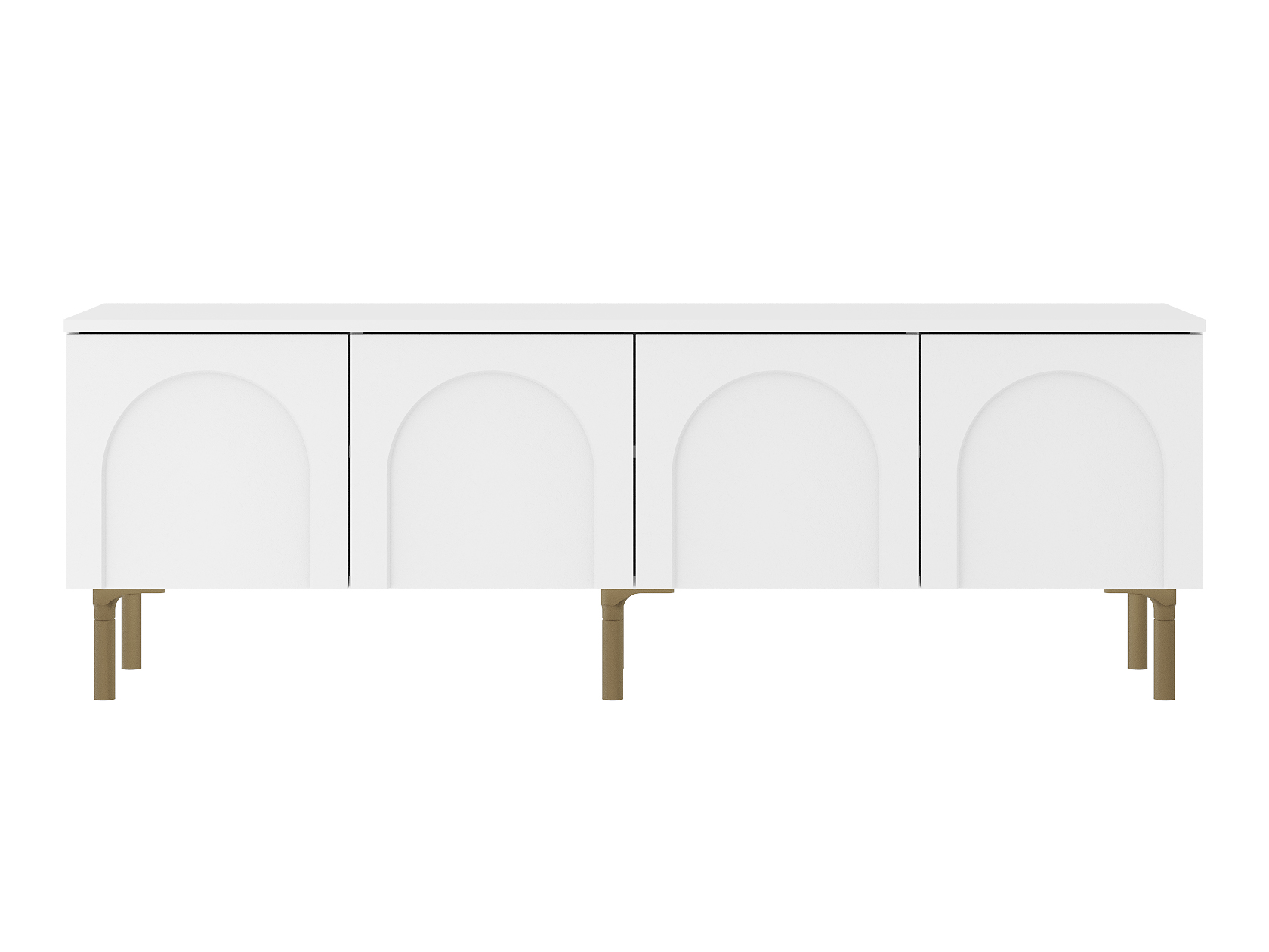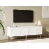 Просторная поверхность станет надежной основой для широкоформатного монитора и прочей мультимедийной техники. Вместительные отделения обеспечат удобное хранение аксессуаров и различных предметов обихода. Матовые фасады с изящными арочными элементами придают мебели индивидуальность. Высокие ножки в оттенке золота добавляют конструкции легкость и упрощают уборку.