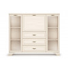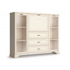 Корпус выполнен из ЛДСП, опоры — МДФ. Шкаф комплектуется металлическими ручками цвет «старая бронза» и надежной крепежной фурнитурой. Петли на дверях имеют доводчики. Ящики оснащены шариковыми направляющими.